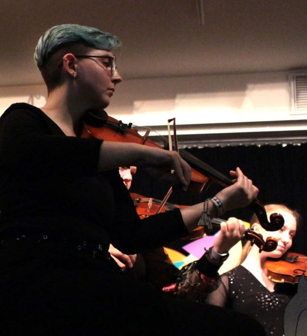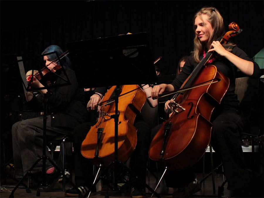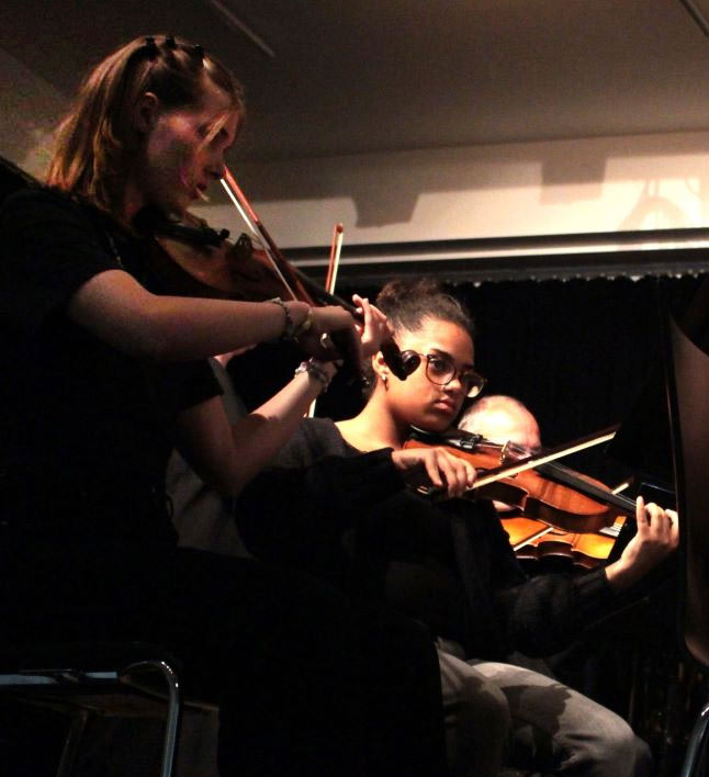 Bettina Harmdorf und das Schulorchester des Goethe-Gymnasiums unter Leitung von Indira Chuda und Yasmin Vogts. Der