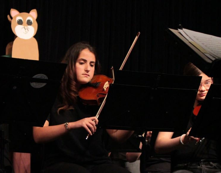 (Jg. 10) lebendig wurde. Die Gastmusikerin Hildegard Demgenski stellte mit der Oboe die tollpatschige Ente, Rayan Mohasin (Jg. 8)