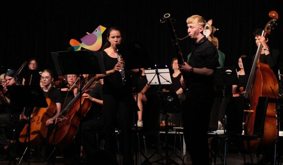 Vogel, dessen Flattern und Zwitschern durch die Querflöten von Helene de Vries (Jg. 11) und Emmi Güldener