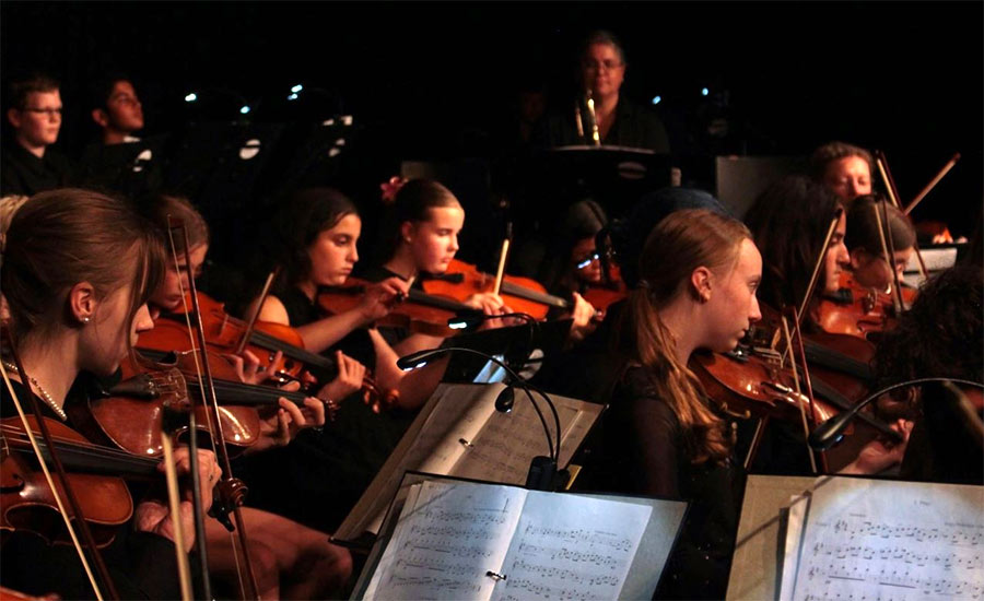 Jahrgängen 4, 5 und 6 in dem Eröffnungsstück mit. Das Einstiegsorchester präsentierte sich mit